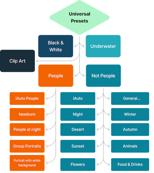 AI Preset Selection is a system developed by EyeQ to apply different presets to photos of differing subject matter, lighting conditions, or content. Instead of applying a single preset to every image that you process - you can create a family of presets, each tuned for a specific scene. Starting in SDK 10.0.2, we have updated our AI Preset Selection model to be faster, more accurate, and much smaller - leading to substantially faster model loading times.